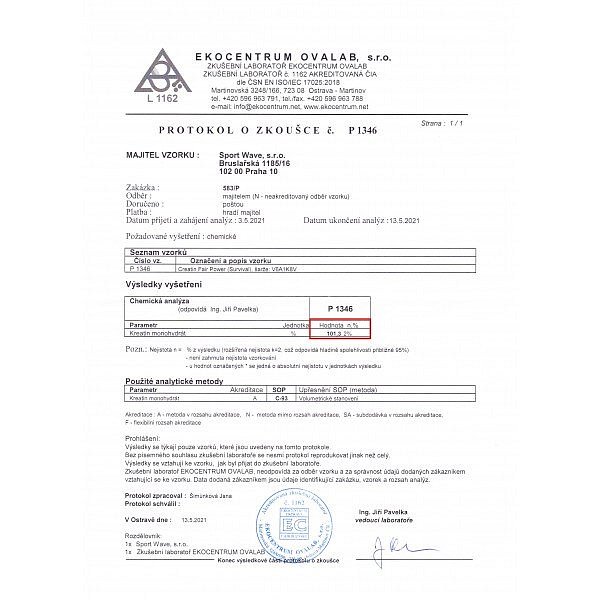 K produktu byl doplněn do galerie výsledek laboratorního rozboru - obsah kreatinu 99,84 %!