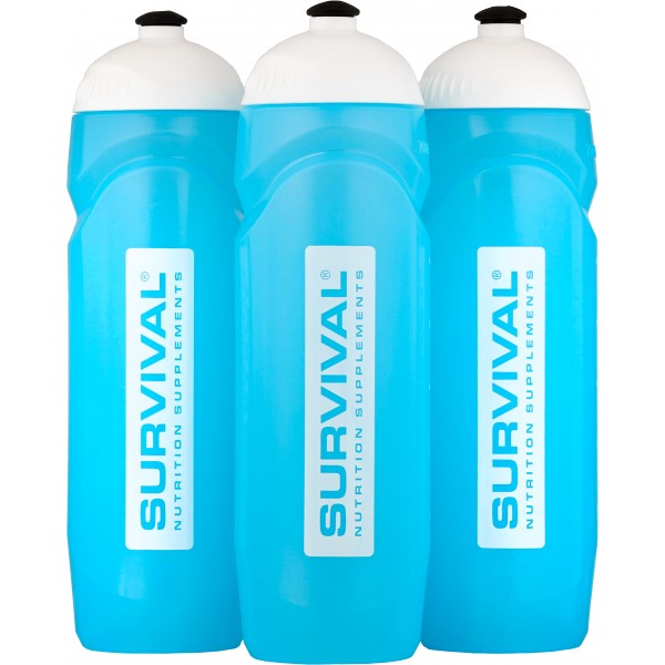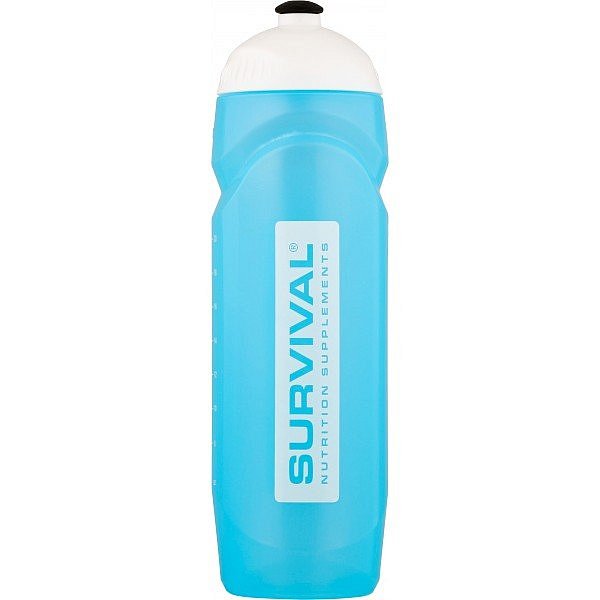 750 ml. Po straně má rysky objemu pro snadné zjištění množství nápoje uvnitř. Bílé šroubovací víčko s černým posuvným náústkem. Bez hubice. Láhev je modré barvy, na sobě má logo Survival v bílo-modrém provedení. Stupnice je uvedena jak v jednotkách ml, tak oz.