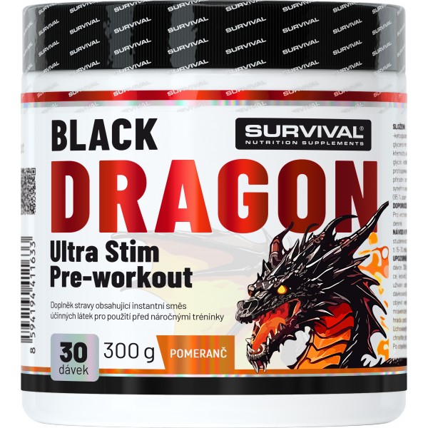Popis obrázku: Survival NAKOPÁVAČ Black Dragon Ultra Stim Pre-workout 300 g, pomeranč