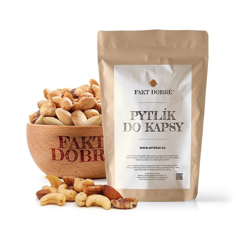 Malý, ale výživný! Náš 50gramový pytlík plný ořechů, ovoce, semínek nebo směsí se vejde do kapsy, kabelky i batohu – ideální na výlet, do práce i do školy. Zdravá svačina po ruce, kdykoli potřebujete rychle doplnit energii.