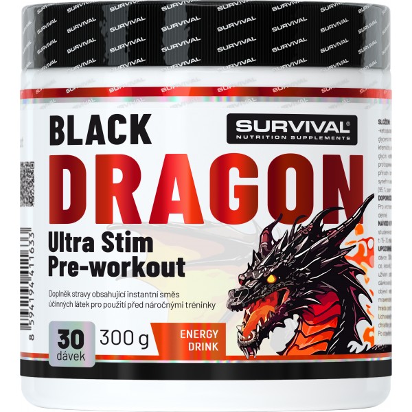 Popis obrázku: Survival NAKOPÁVAČ Black Dragon Ultra Stim Pre-workout - 300 g, černá višeň